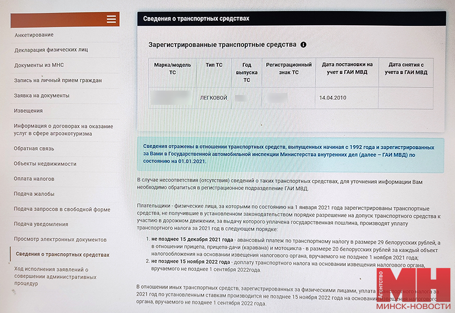 С 1 января 2021 г. физические лица, индивидуальные предприниматели и организации в Беларуси будут платить транспортный налог. Он взимается за каждое транспортное средство, которое зарегистрировано за плательщиком в управлении ГАИ МВД Беларуси. Налог вносится в бюджет на основании извещения. В нем будут указаны объект налогообложения, сумма налога, срок уплаты и реквизиты для оплаты. Интересующую информацию можно узнать в контакт-центре налоговых органов.