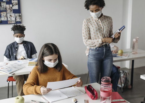 Медицинская маска также является хорошим выбором, если она хорошо сидит на лице ребенка. Если эти опции недоступны вашей семье или подгонка не подходит вашему ребенку, трехслойная тканевая маска с одноразовым фильтром – отличный вариант. Вы также можете надевать на ребенка тканевую маску поверх медицинской маски, чтобы она прилегала более плотно и при необходимости отрегулировать завязки и крепления. Чем больше детей носят высококачественные, хорошо сидящие маски, тем лучше для всех не только в школе или классе, но и в общественных местах.