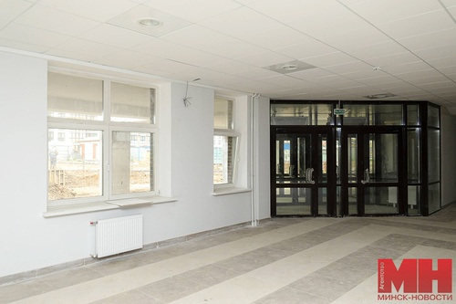 Мы держим курс на холл. Собеседница сообщает, что при входе в школу установят СКУД (система контроля и управления доступом). Она не позволит проникнуть посторонним. Турникеты и вертушки оборудуют позже, подключат систему видеонаблюдения. Ученики и учителя для входа будут использовать карты доступа. В школе днем и ночью будут дежурить сотрудники Департамента охраны МВД Беларуси. Не без удивления замечаем, что в учреждении образования имеется лифт – он заработает чуть позже. На первом этаже имеются общественные санузлы и санузлы для людей с ограниченными возможностями.