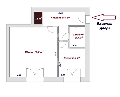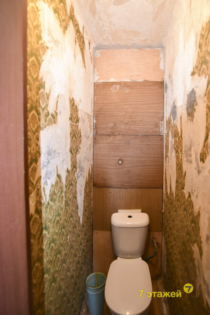 В отличие от предыдущей однушки, в этой есть балкон. Общая площадь квартиры — 33,8 м2, жилая — 16,7 м2. Кухня — 7,2 м2. Панельная девятиэтажка построена в 1983 г., 6-й этаж.