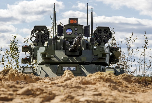 На земле также продолжали осваивать роботизированные системы. На уже упомянутых учениях «Запад-2021» российские военные впервые массовоприменилисерийные роботизированные платформы «Нерехта», «Уран-6», «Платформа-М» и «Уран-9». Роботы действовали в боевых порядках, осуществляя прикрытие и выполняя разведывательные задачи. Параллельно в России продолжалась работа над робототехнической платформой «Маркер».