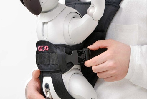 Робота-щенка Aibo можно брать с собой в слинге, чтобы сформировать эмоциональную связь