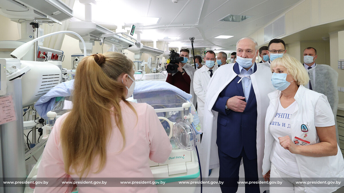В научно-практическом центре Александр Лукашенко посетил новый корпус клинического отдела анестезиологии, реанимации и интенсивной терапии новорожденных. Министр здравоохранения Дмитрий Пиневич и директор РНПЦ «Мать и дитя» Сергей Васильев доложили Президенту об организации перинатальной помощи в стране и работе РНПЦ. Затем Александр Лукашенко посетил в новом корпусе лечебный блок, в том числе отделение, где выхаживают малышей весом от 500 г.