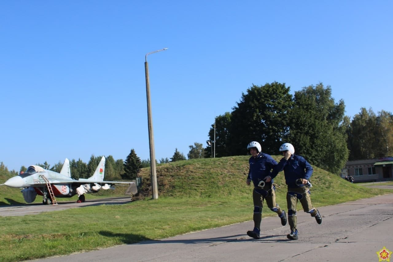 На аэродроме 61-й истребительной авиационной базы Вооруженных Сил Беларуси прошел торжественный ритуал заступления на боевое дежурство по совместной охране дежурными силами воздушных границ Союзного государства. Одновременно в это же время в западной точке страны специалисты зенитных ракетных войск также заступили на боевое дежурство с теми же задачами и целями.