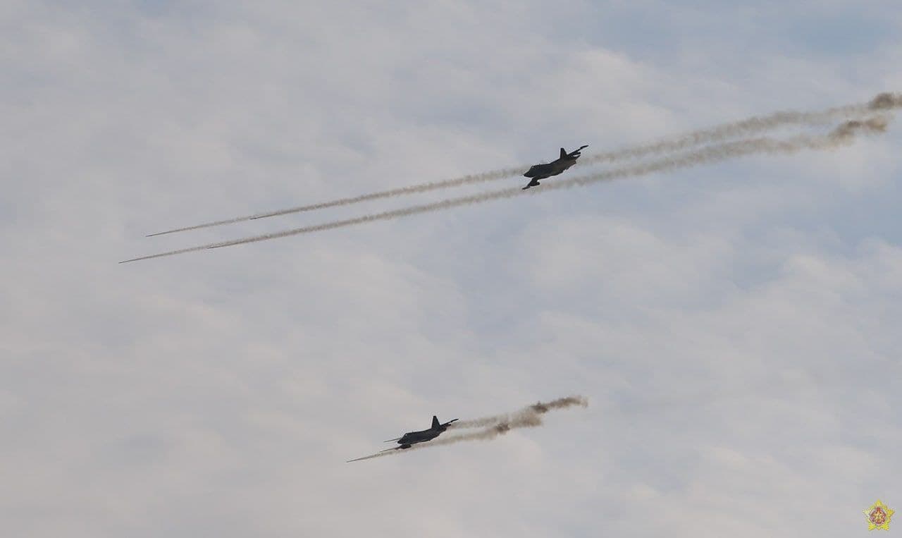 Более 20 военных воздушных судов Беларуси и России отработали применение авиационных средств поражения. Об этом сообщает официальный телеграмм-канал Министерства обороны Беларуси.