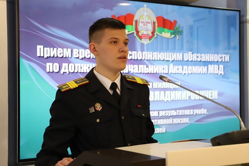 — Хочу выразить слова искренней благодарности от всех курсантов руководству Академии МВД, профессорско-преподавательскому составу, курсовым офицерам за новые знания и бесценный опыт, родителям — за поддержку, — выступил второкурсник факультета криминальной милиции Евгений Шевчукас. — В академии каждый курсант получает возможность стать высококвалифицированным юристом, а мы должны стремиться достойно проявить себя в учебной, а затем в профессиональной деятельности.