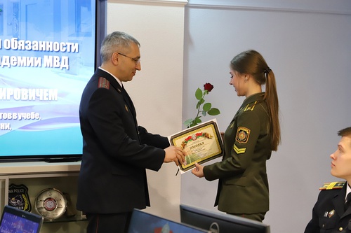 Благодарности объявлены курсантам факультета милиции общественной безопасности Вячеславу Гавето, Александру Вегеро, Никите Семенкову, Александру Малявко, Сергею Августиновичу, Илье Лаворенко, курсантам факультета криминальной милиции Евгению Шевчукасу, Глебу Саковичу, Вячеславу Чебровскому, Егору Борисевичу, Павлу Протащику, Михаилу Рудько, Даниилу Горчаруку, Алексею Врублевскому, курсантам следственно-экспертного факультета Матвею Бычковскому, Ксение Пекарской, Диане Буевой, Дарине Журовой, курсантам уголовно-исполнительного факультета Ксении Побегайло, Глебу Шкарбуну, Владиславу Колпакову, Елизавете Яцкевичу.