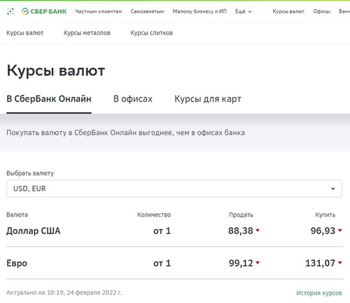 Купить доллары в «Тинькофф банке» можно за 110,48 рублей, а евро за 111,73. В «Сбере» их стоимость 96,93 и 131,07 соответственно. В ВТБ доллар можно приобрести за 93,8 рублей, евро — за 104,95.