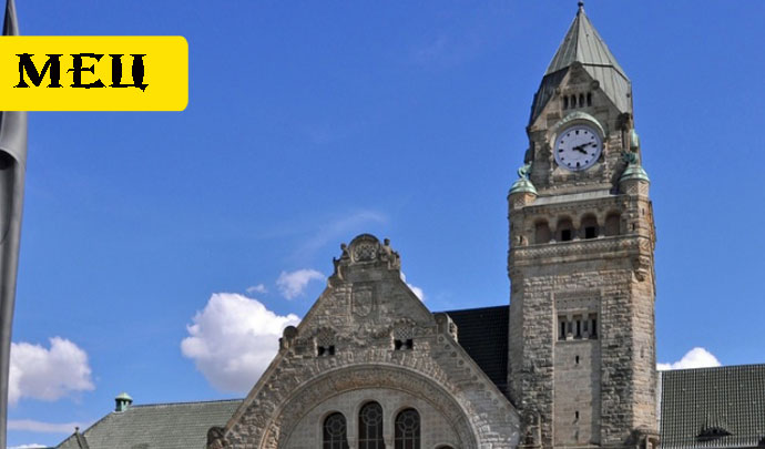 В 1905-1908 годах берлинский архитектор Юрген Крёгер с командой помощников построили в Меце здание железнодорожного вокзала длиной более 300 метров с 40-метровой часовой башней.