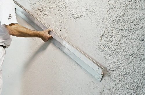 - Имеющиеся значительные неровности основания нивелируютштукатуркой и шпаклёвкой. Высохшую поверхность обрабатывают грунтом.